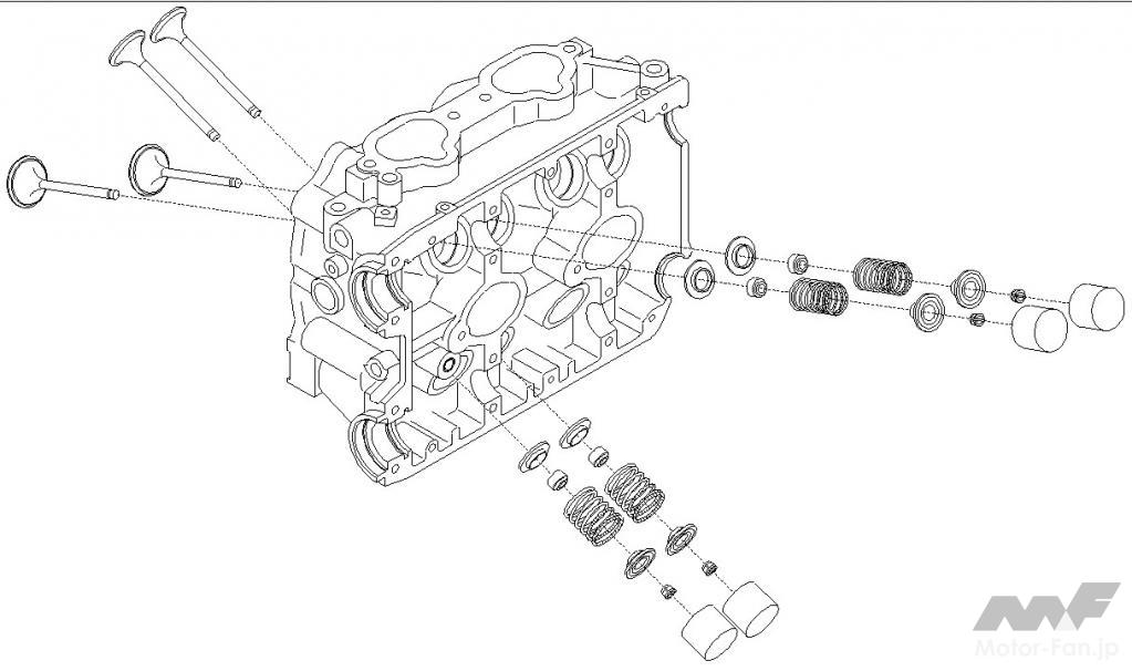 バルブ駆動は直打式のツインカム16バルブである。カムはコッグドベルトで駆動され、吸気側にはAVS(アクティブ・バルブ・コントロール・システム)と呼ばれる連続可変バルブタイミング機構が採用されている。全回転域にわたり燃焼効率の向上に貢献し、スロットル操作に対してリニアでスムーズなレスポンスを発揮する。