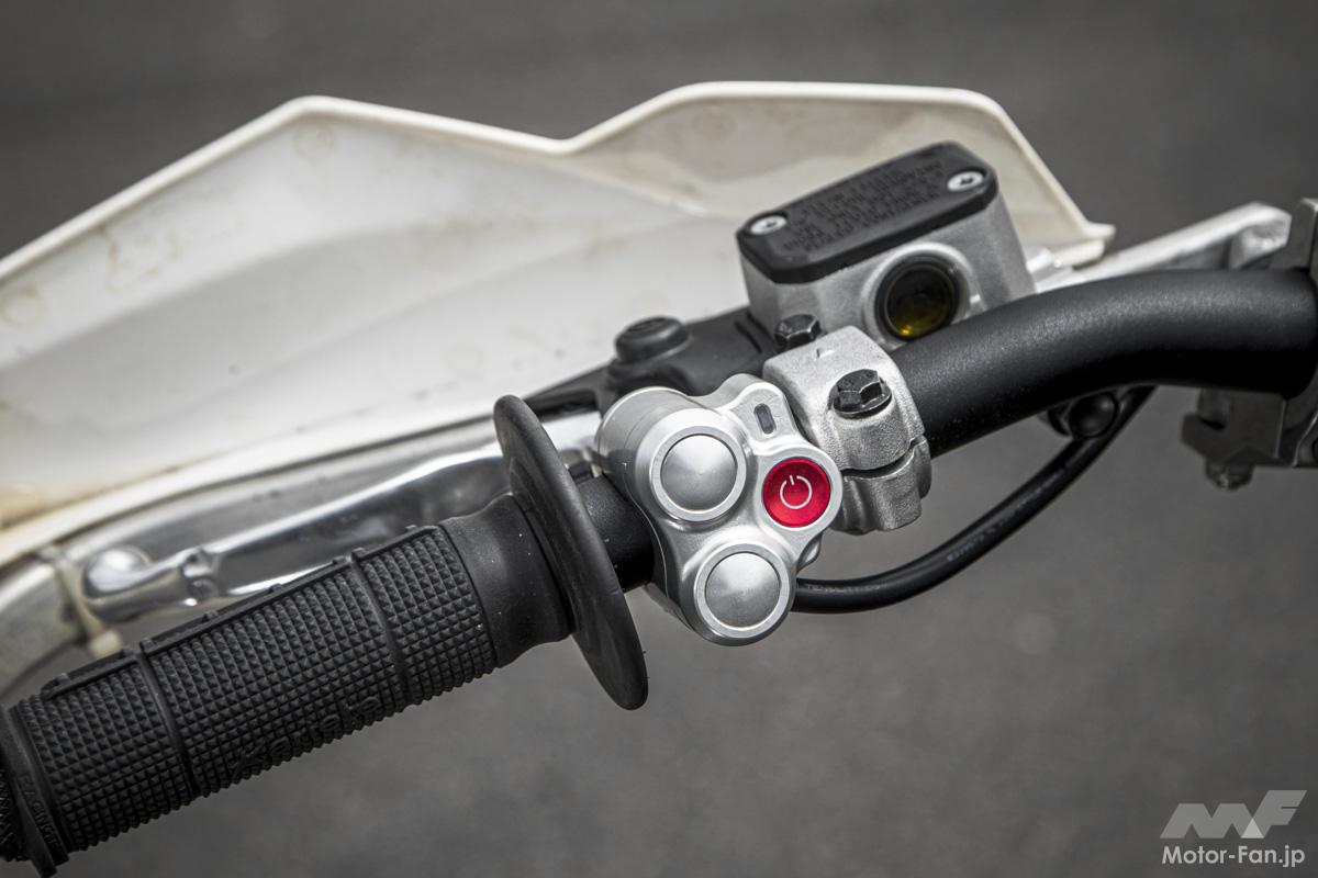 スーパーモタード仕様にする場合、ブレーキやサスペンションをオンロード走行に合わせて変更することが多いのだが、このマシンではオフロードの走行が多いこともあって足回りには手を入れていない。