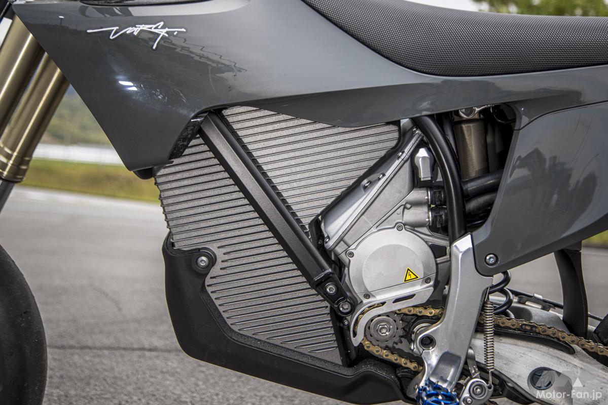 このマシンがデビューしたときから着目していたのが横浜にあるアルタイヤモーターの大崎氏だった。日本国内では最初の代理店となってリリースを開始。今回紹介するモデルはStark Varg MX。アルタイヤによってホイールを前後17インチとしたスーパーモタード仕様だ。
