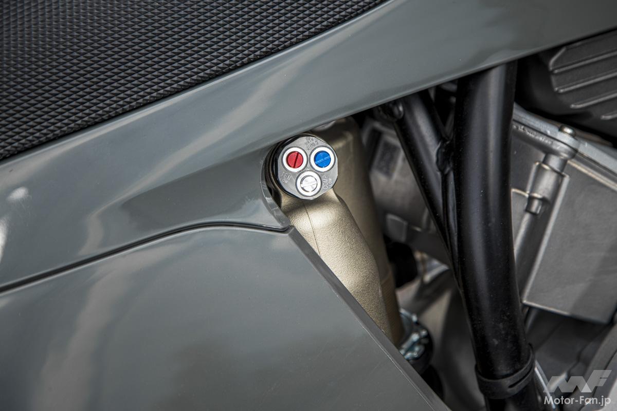 今回の走行では回生ブレーキを強めに利かせていたのでコーナーではリアに減速方向のトラクションがかかり、若干オーバースピード気味で進入してもスロットルをオフにしておけば自然な感じで減速から旋回につなげていくことができた。さすがにこのパワーだとスロットルを開けるタイミングでは慎重な操作が必要だが、オーナーはシチュエーションによってリアブレーキを使いながらスロットルを開けるなど工夫しているということだった。