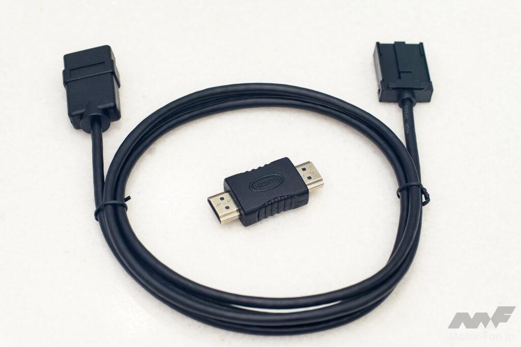 とはいえHDMI端子同士を接続するといっても、じつは機器によって形状が異なっている場合が多くあり、その際には変換ケーブルが必要となる。データシステムから6月にリリースされた「HDMI変換ケーブル AV003」は、カーナビに多く使われている「HDMI タイプE端子」を一般的な「HDMI タイプA端子」へと変換して接続ができるケーブル。ケーブル長は1.5mで、カーナビ本体背面に装備された端子と車内の機器をつなぐには十分な長さだ。