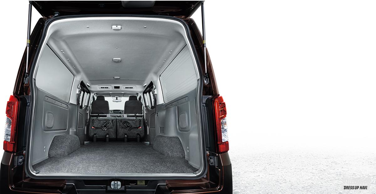 最新の3型は「2.5Lガソリン」「2.0Lガソリン」「2.4Lディーゼルターボ」の3種。バンでは「2.5Lガソリン」がスーパーロング専用、「2.0Lガソリン」がロング専用、ディーゼルは両者で選択できる。「2.0Lガソリン」と、「2.4Lディーゼルターボ」はバン専用。ワゴンは「2.5Lガソリン」のみ。ディーゼルは2022年2月の改良で、出力&環境性能ともに上がった。3型以降は全車マニュアルモード付きの7AT。MTは現在なし。駐車ブレーキは乗用車的な足踏み式、プッシュ式エンジンスタートも標準だ。