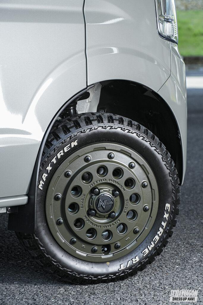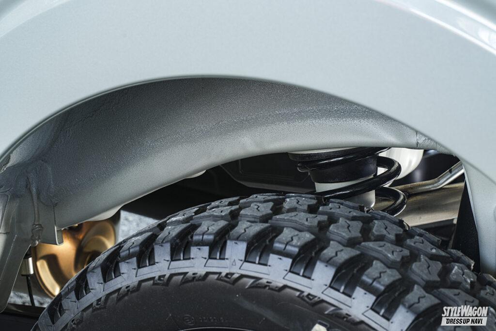 ちなみに外装は原則としてホイール&タイヤのみで、ホイールに関してはMIDホイールのマルカサービス製モデルからセレクトできる方式。タイヤも好み次第でオフタイヤを選ぶこともできるし、リフトアップだけでなく純正車高のままでもOKだから、乗り降りしやすく使い勝手もバツグンだ。
