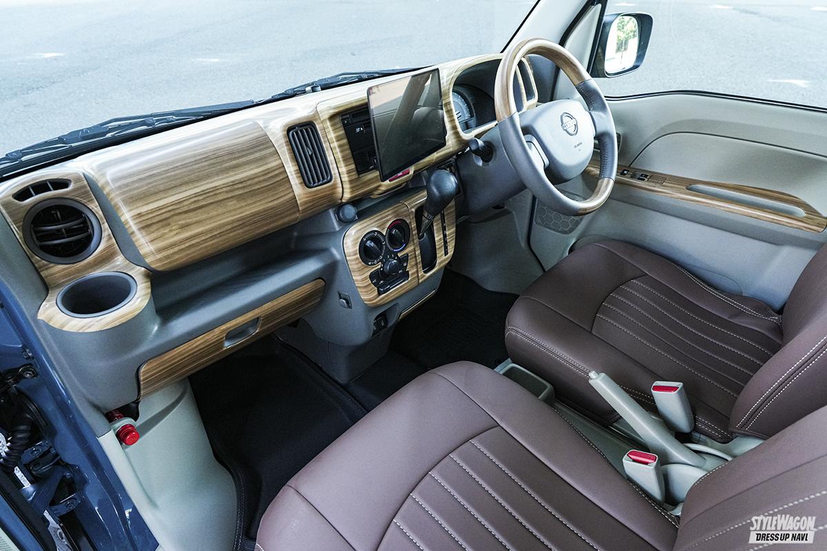 ちなみに外装は原則としてホイール&タイヤのみで、ホイールに関してはMIDホイールのマルカサービス製モデルからセレクトできる方式。タイヤも好み次第でオフタイヤを選ぶこともできるし、リフトアップだけでなく純正車高のままでもOKだから、乗り降りしやすく使い勝手もバツグンだ。