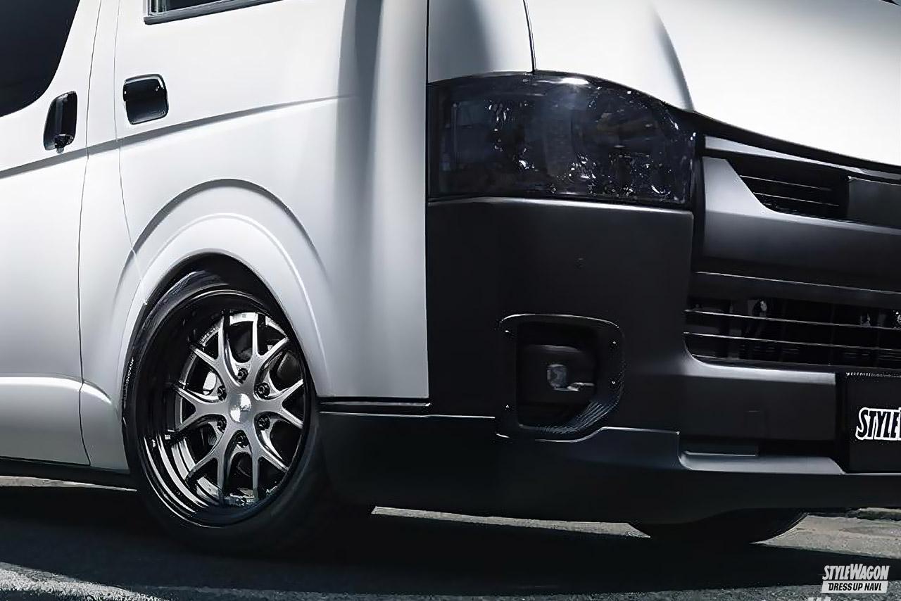 ロクサーニを代表するモデルであり、後にスピンオフモデルも数多く生み出してきたバトルシップは、そもそもハイエースのために開発されたホイール。だから力強いその意匠は、どの作品もハイエースとは好相性で、その系譜に連なる最新のバトルシップ、バルコックスもまた、ハイエースにとって心強い相棒となるのは当然である。