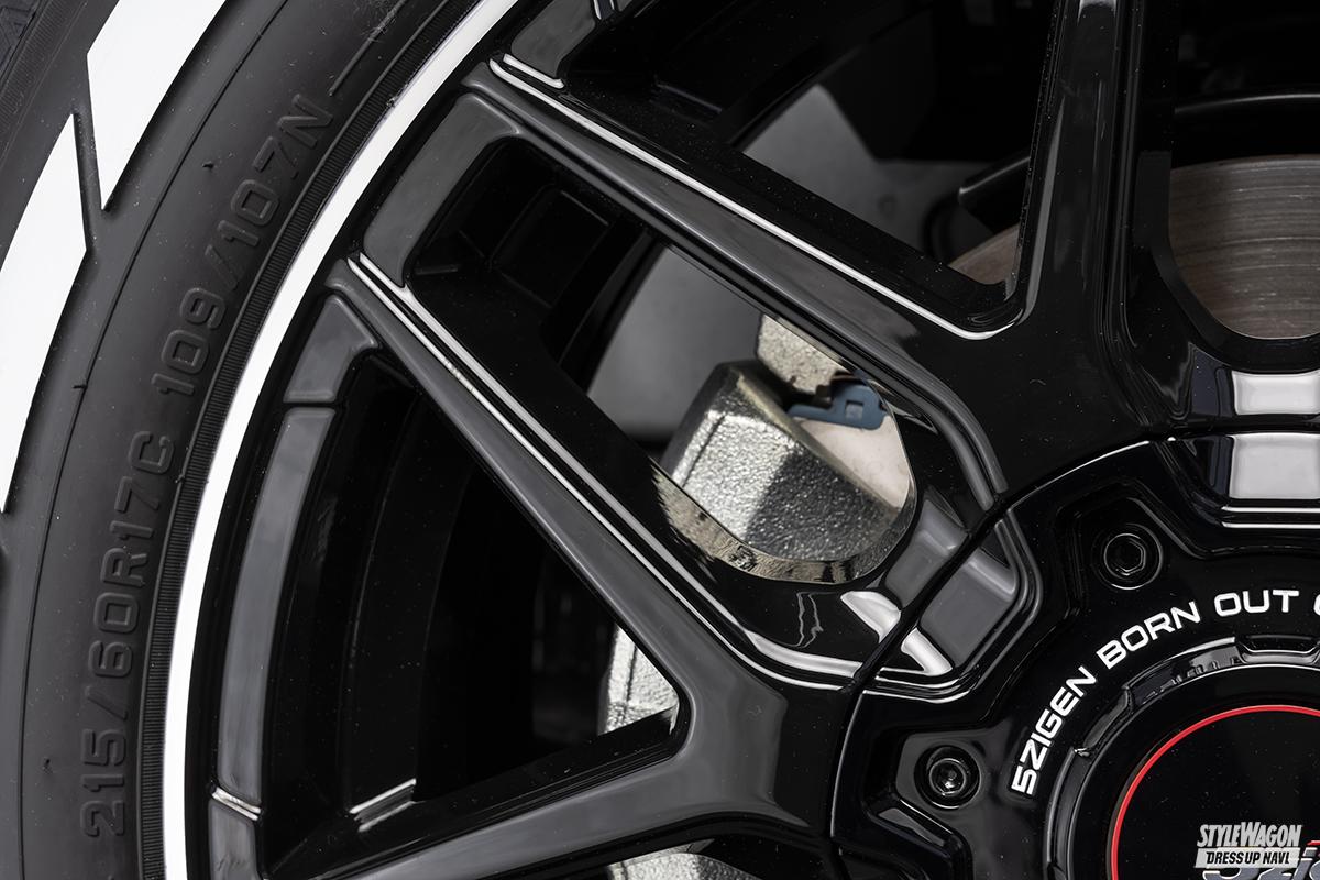 スポーツ度MAXなハイエース対応ホイール、TF500XC-Mも注目。細く鋭い7本のY字スポークは大口径感も強く、こちらもオン/オフ二刀流だ。