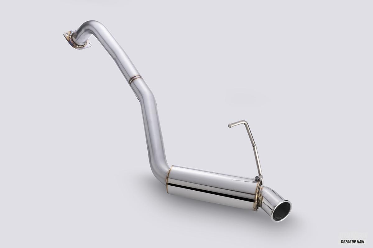 設定車両に最適なレイアウトを実現する5ZIGENのスペシャルスペックマフラーに、4型以降用として初めて設定されたのがこのストリート。メインパイプは60φで、サイレンサー内部はパンチングストレートの100φという本格派で、その基本性能の高さは折り紙付きだ。と同時にビジュアル面での優位性も大。レーシングカー同様の接ぎ加工で仕上げた70φのカールエンド砲弾テールをナナメ出ししたその姿は圧倒的にスポーティ。後ろ姿の印象を変えるオン/オフ両用マフラーだ。