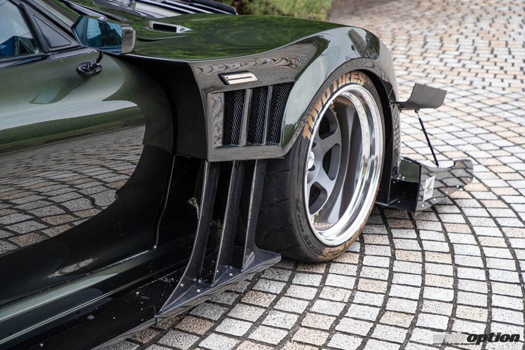 フロントフェンダーもTCPマジック製をベースに、ボディ側とフェンダー側で一度切断してワイド化。ボンネット形状に沿う形にデザインを大幅変更している。また、サイドダクトについては既製品を利用しているそうだ。