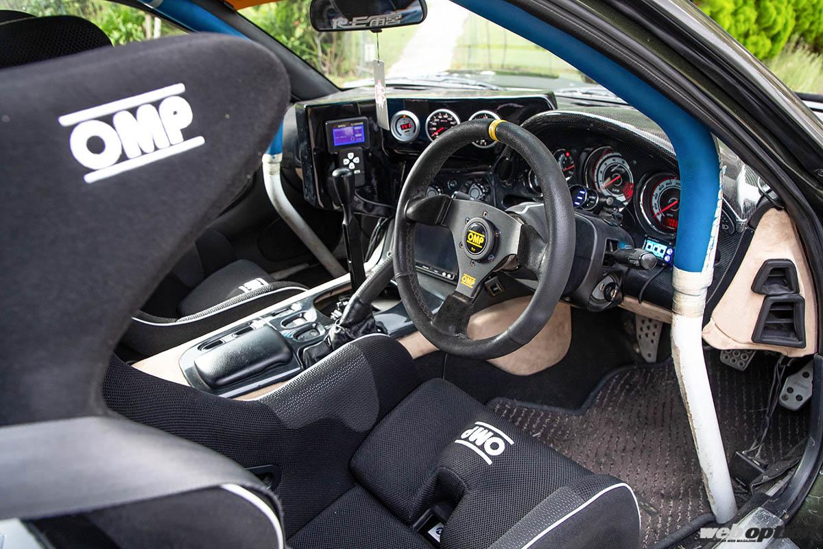 パワーチューンも抜かりなく、サイドポート拡大加工された13B-REWユニットにK27タービンをドッキングして459psを発揮。エンジン系における現在の目標は、チューンドロータリーらしいサウンドを発するブリッジポート化とのこと。