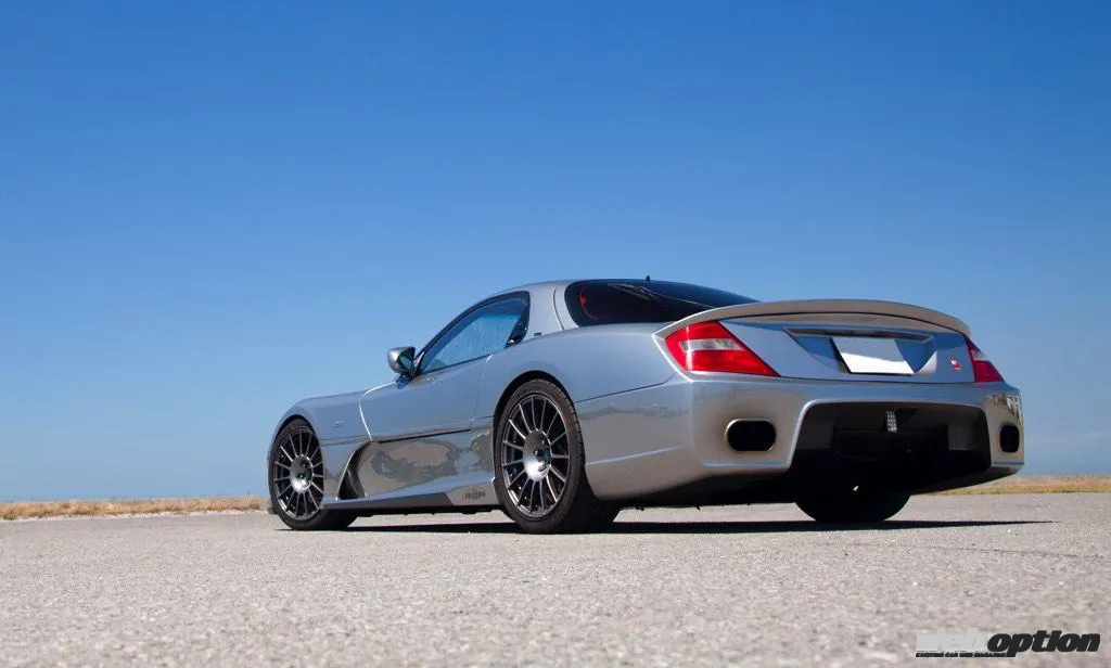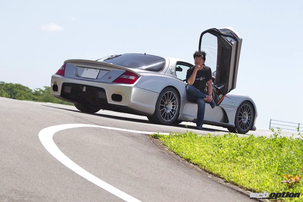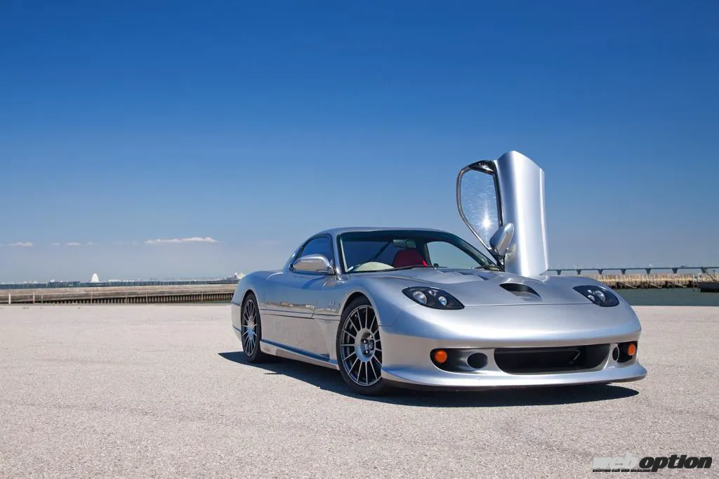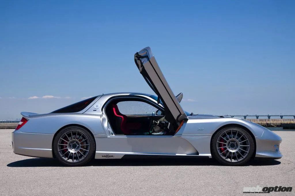 そんな至宝の4ローターユニットを包むエクステリアは、FD3Sのアイデンティティを残しつつ、欧州スーパースポーツのようなフォルムを求めて製作されたオリジナル。そのシルエットは、まるでメーカーが開発したニューモデルのような超クオリティを誇る。ドア開閉にはガルウイングが採用されているのだが、その跳ね上げアクションはマクラーレンSLRなどが採用するスイングウイング式となる。