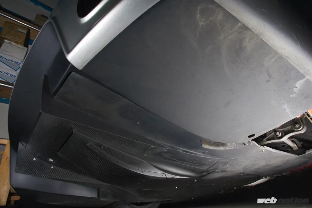 もちろん空力も追求されており、グラウンドエフェクトによるマイナスリフト空力特性を手にするべく、ボディ下面はドライカーボン平板で完全にフラットボトム化。リヤセクションにはF3で実戦投入されているレーシングカー用のカーボンディフューザーが設置されている。