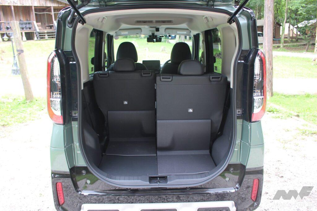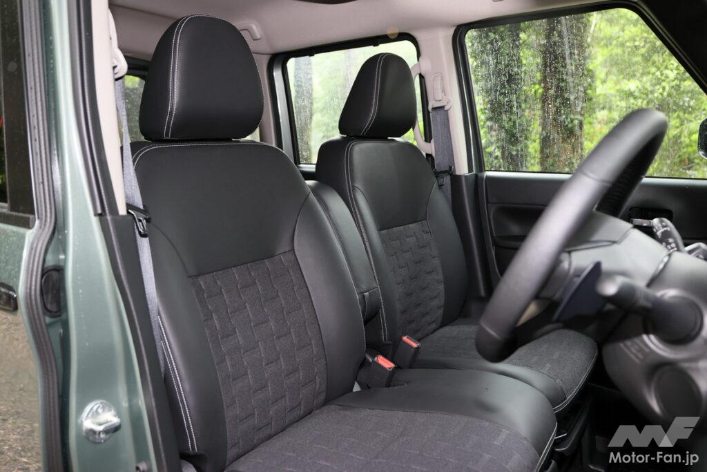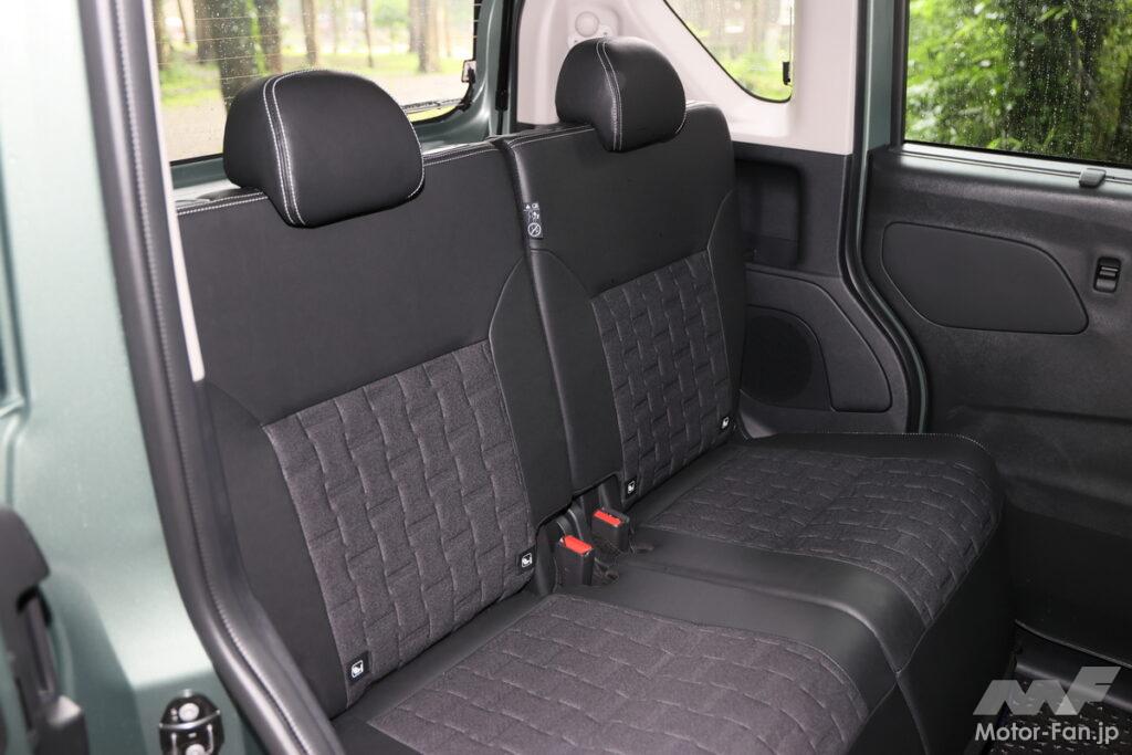 そのほか、荷室側からワンアクションで後席のスライドができる多彩なシートアレンジをはじめ、3Dパターンの撥水シート生地は夏場でも蒸れにくく、水汚れなども拭き取りやすいなどの利点もある。アウトドアだけでなくてもうれしい装備が多いのも「○」だ。シートアレンジなどの使い勝手は、完成度が高いこともあり、eKクロス スペースから手は入れられていない。