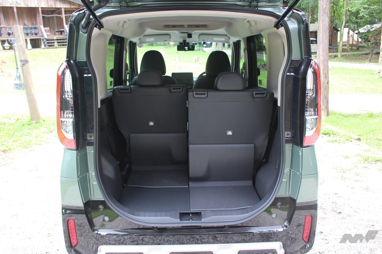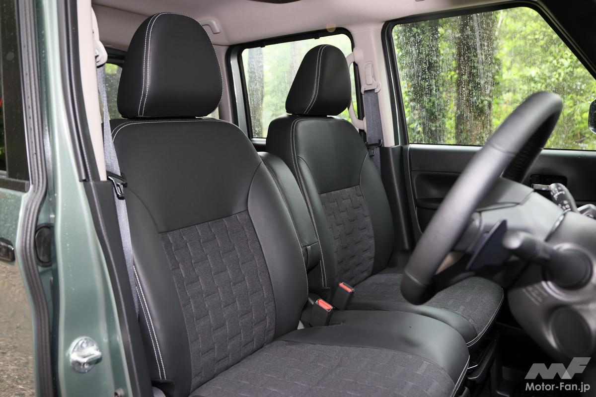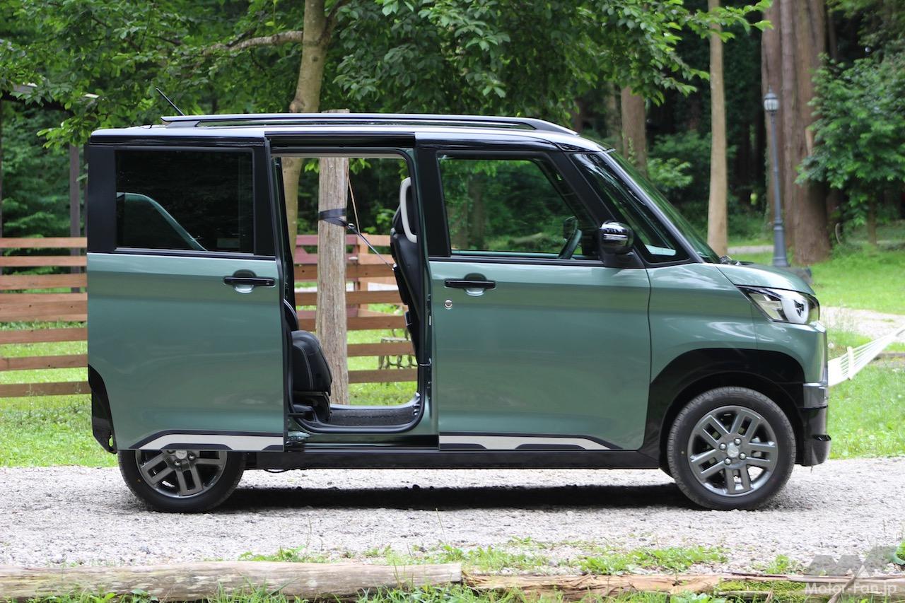 そのほか、荷室側からワンアクションで後席のスライドができる多彩なシートアレンジをはじめ、3Dパターンの撥水シート生地は夏場でも蒸れにくく、水汚れなども拭き取りやすいなどの利点もある。アウトドアだけでなくてもうれしい装備が多いのも「○」だ。シートアレンジなどの使い勝手は、完成度が高いこともあり、eKクロス スペースから手は入れられていない。