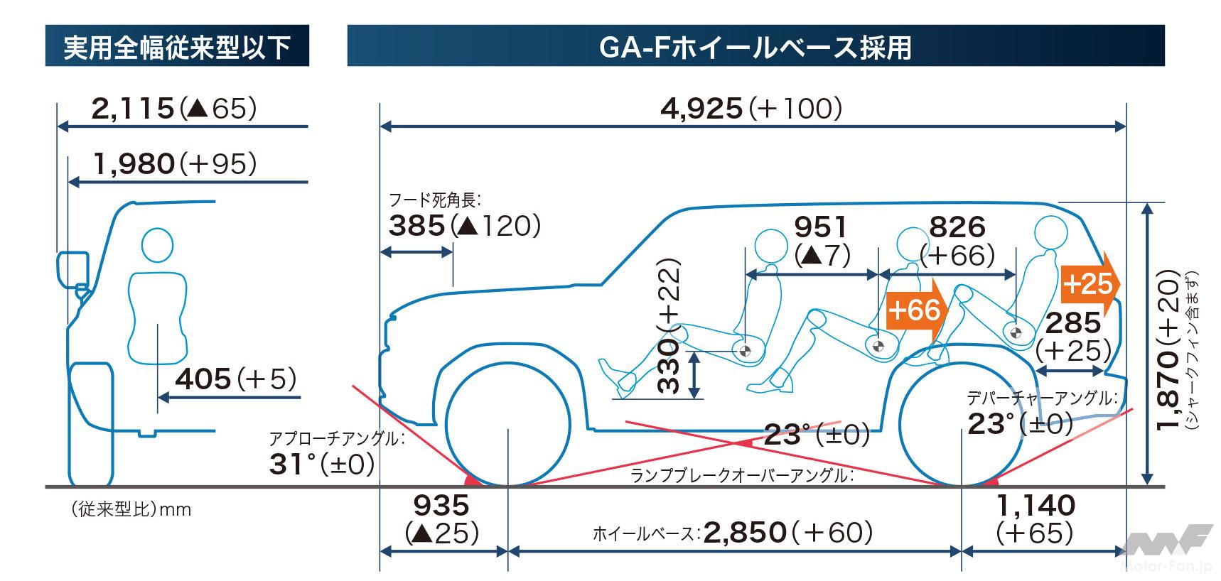 全⻑×全幅×全高:4925(+100)×1980(+95)×1870mm(+20)