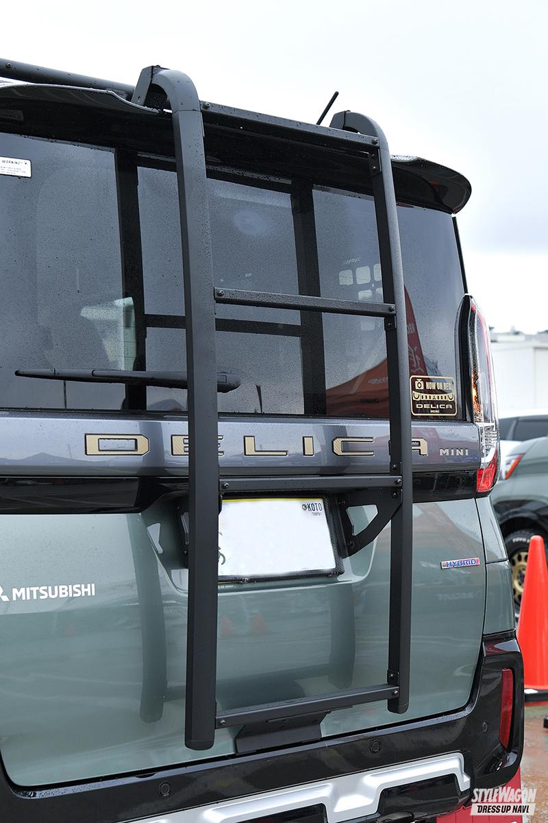 昨年のオートサロンでデリカミニの展示を見て、クルマの免許を取得することを決めたというまろんさん。今年の5月に初心者マークが外れ、現在は趣味の釣りに行く際の良き相棒となっている。初めての愛車だがカスタムのセンスはピカイチ! フロントの三菱マークはレッドのカッティングシートをDIYで貼っている。バンパーガード、ルーフラック、ラダーやフォグなどを装着し、アウトドア系で全体をまとめている。ブリッツのマフラーは、踏み込むと良い音がするので、走っていて楽しいそう。これからも素敵なカーライフを安全に過ごしてください!