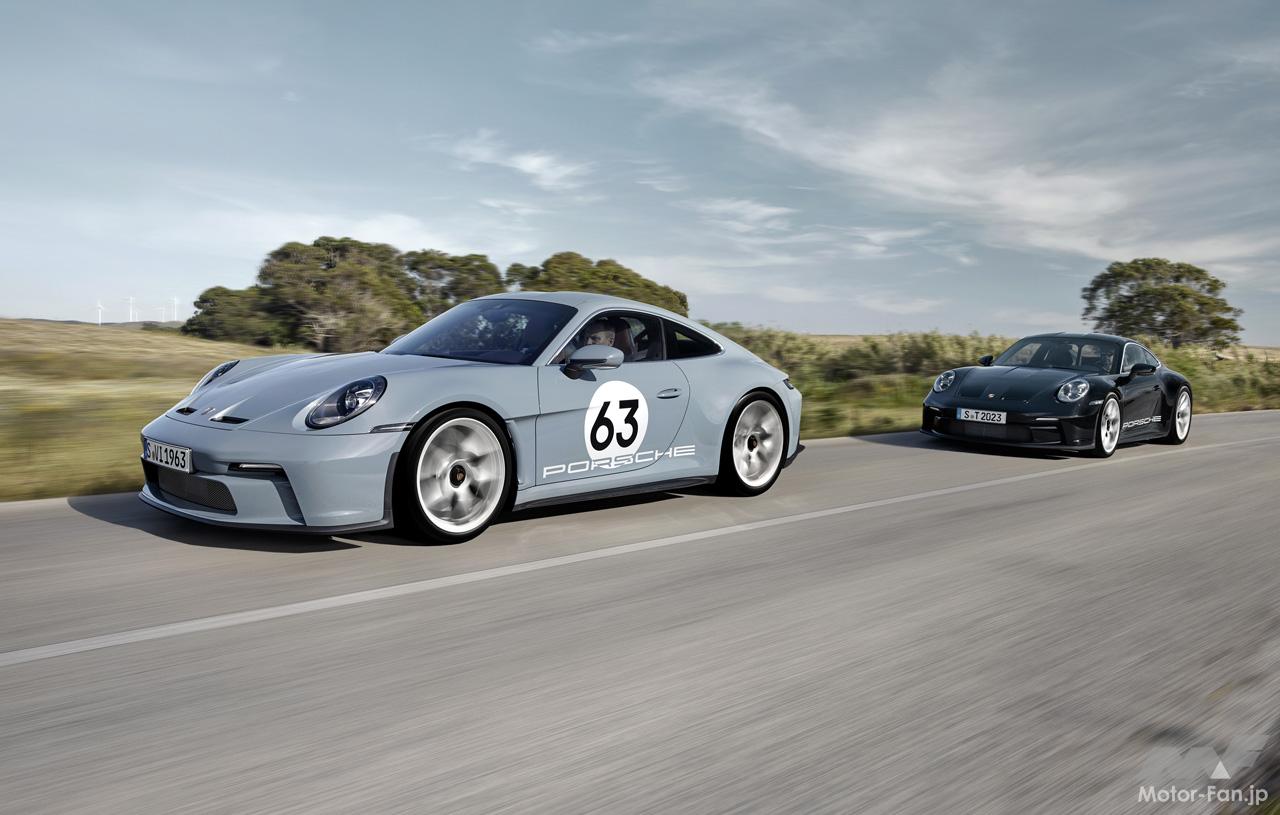 この名称によって、911 S/Tは初代911の特にパフォーマンス重視のバージョンの後継であることを示している。ポルシェは1969年に、911 Sに特別なレースバージョンを設定。これらの車両は社内では911 STと呼ばれていた。シャシー、ホイール、エンジン、ボディの変更により、加速、ブレーキング、トラクション、コーナリンググリップが大幅に改良された。大型スポイラーやその他の空力補助装置は、これらのモデルにはまだ用いられなかった。新型911 S/Tは、初代911 S(ST)のスピリットを受け継ぎポルシェ911の現行モデルに移し替えている。この記念モデルは、911 GT3 RSのエレメントと911 GT3のツーリングパッケージ仕様車のボディを組み合わせて、911 S/Tのために特別に開発された軽量コンポーネントで補完。その結果、911 のモデルラインナップの中でもユニークなドライビングエクスペリエンスが提供される。