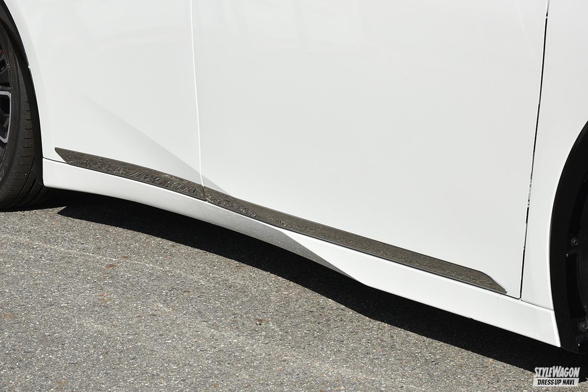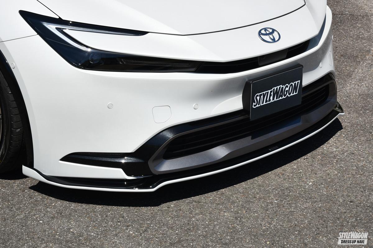 スタイルアップの核となるエアロは、リップタイプのフロントをはじめ、直線基調のサイドステップ、レーシーなデザインのリアディフューザーにリアウイングという4点を用意。シンプルでいながらも抑揚の効いた立体的な形状は、小ぶりながらも装着効果は抜群。先進的なフォルムの60プリウスを、スマートかつスポーティにアップデートしてくれる。