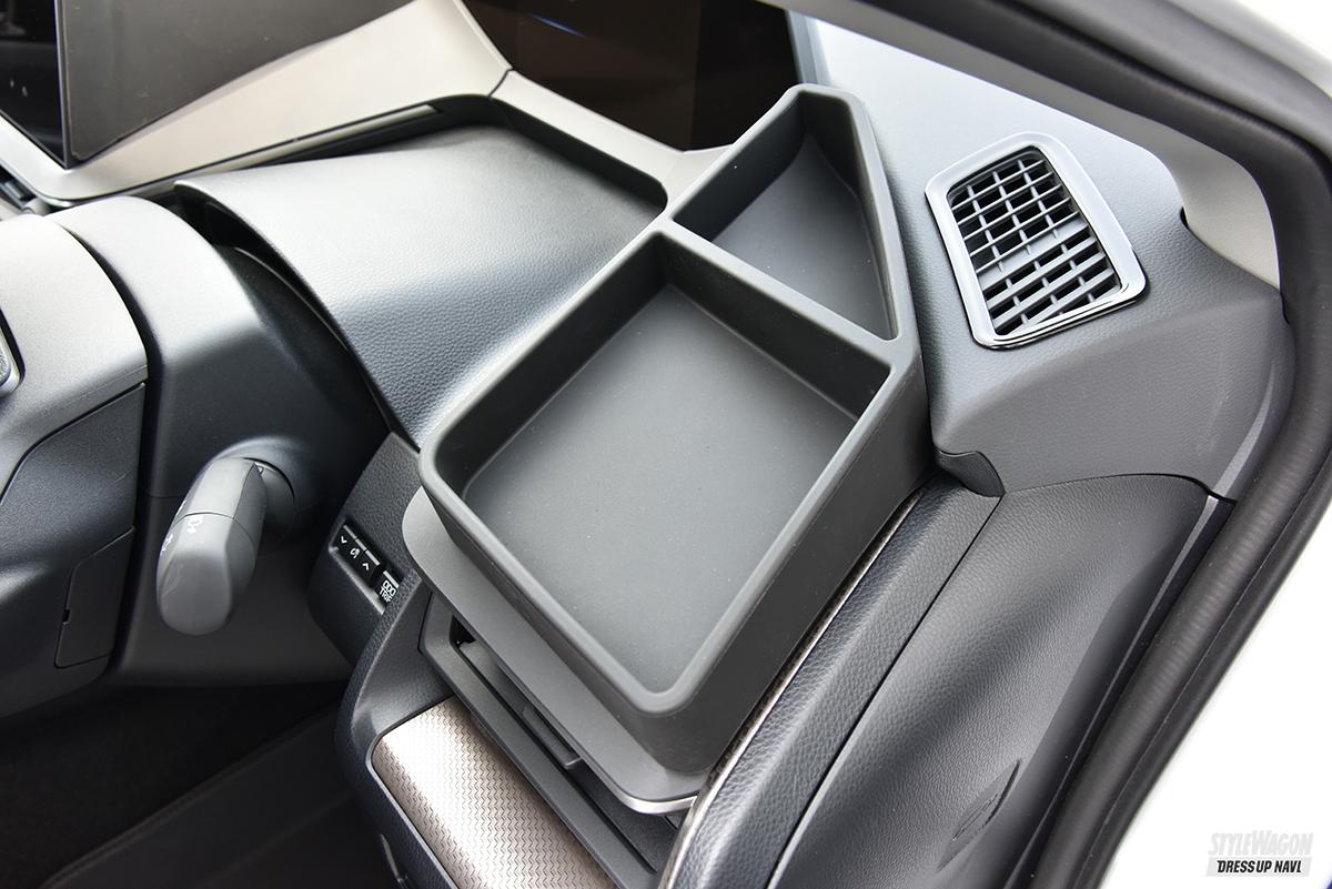 また、手軽に楽しめるアクセサリーパーツが充実している点も見逃せない。インテリアとエクステリアともに、ステンレスガーニッシュをはじめとした、高級感をプラスできるアイテムが揃っている。特にエクステリアは、純正ではメッキパートが少ないだけに、アクセントとしてかなり有効だ。基本的に装着は貼るだけでOKと、誰でも簡単に取り付けができる。価格も比較的リーズナブルなので、まずはここからカスタムをスタートするのもアリだ。