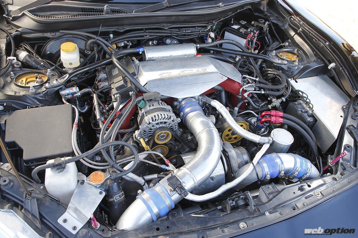 GT3240タービンを組み合わせ500ps、200km/h以上の領域では大量にNOSが噴射され約600psを発揮する。エンジンは、8000rpmオーバーでも使えるようオリジナルのピストンを用いた強化やバランス取りなどを徹底する。