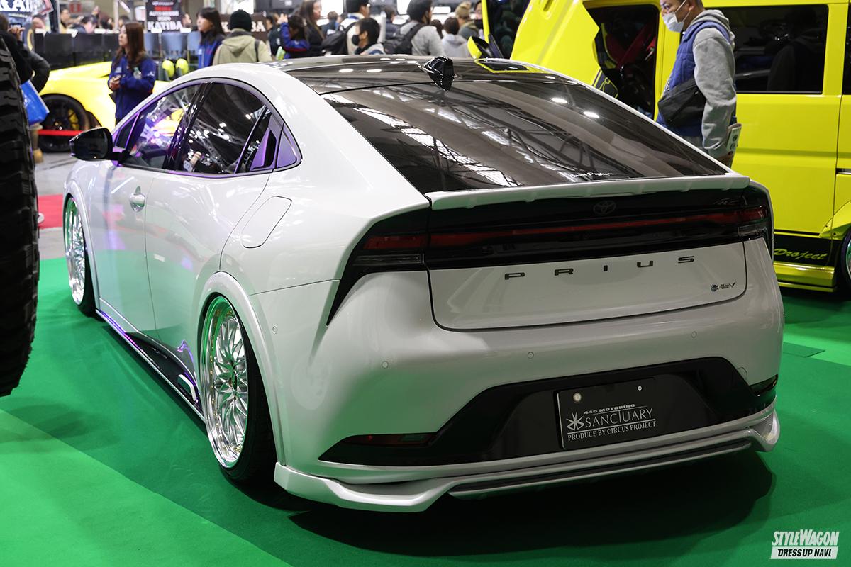 アーティシャンスピリッツの上級ラインであるブラックレーベルが、60プリウスに与えたのは完成度重視のミニマムスケールなカスタマイズ。スタイル的に完成された60に対してそれを崩さず、必要最小限なシンプルデザインで本来の良さを引き上げるのが狙いだ。とは言えボトムをグッと突き出したフロントなど、どれも存在感はバツグン。FRPだけでなくカーボン仕様も設定、ワンランク上も狙える。