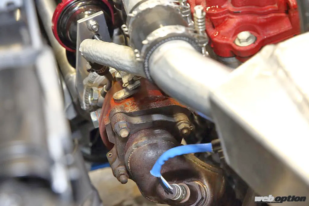 組み合わせるタービンは、軽自動車としてはかなり大型の試作モデル。シリンダー径が小さくノッキングの起こりにくい軽自動車用エンジンのメリットを活かし、最大ブースト圧2.4キロをかけて目標である200psに到達。当然、インジェクターや燃料ポンプも強化するが、制御はコストパフォーマンスも考慮してフラッシュエディターでの最適化を図る。