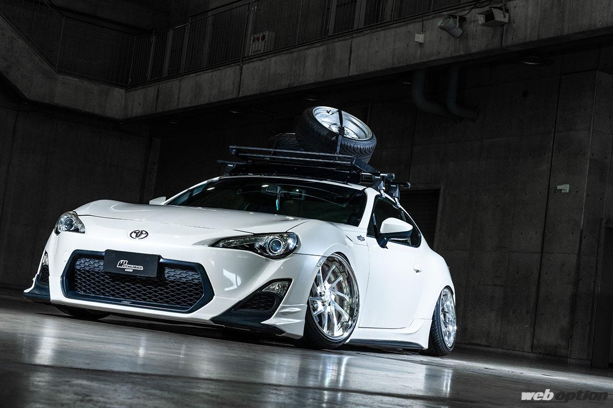 当初は雪が降る季節のことを考えて、FRスポーツモデルの購入を断念していたが、冬の移動手段が確保できたことから念願の86を愛車に迎えてのカスタムを1年前にスタート。カスタムパーツが豊富で中古市場も賑わう人気車種のメリットを最大限に活かして、コストを抑えながら自分の好きをバランス良くまとめた「モノトーンスタンス」に取り組んできた。
