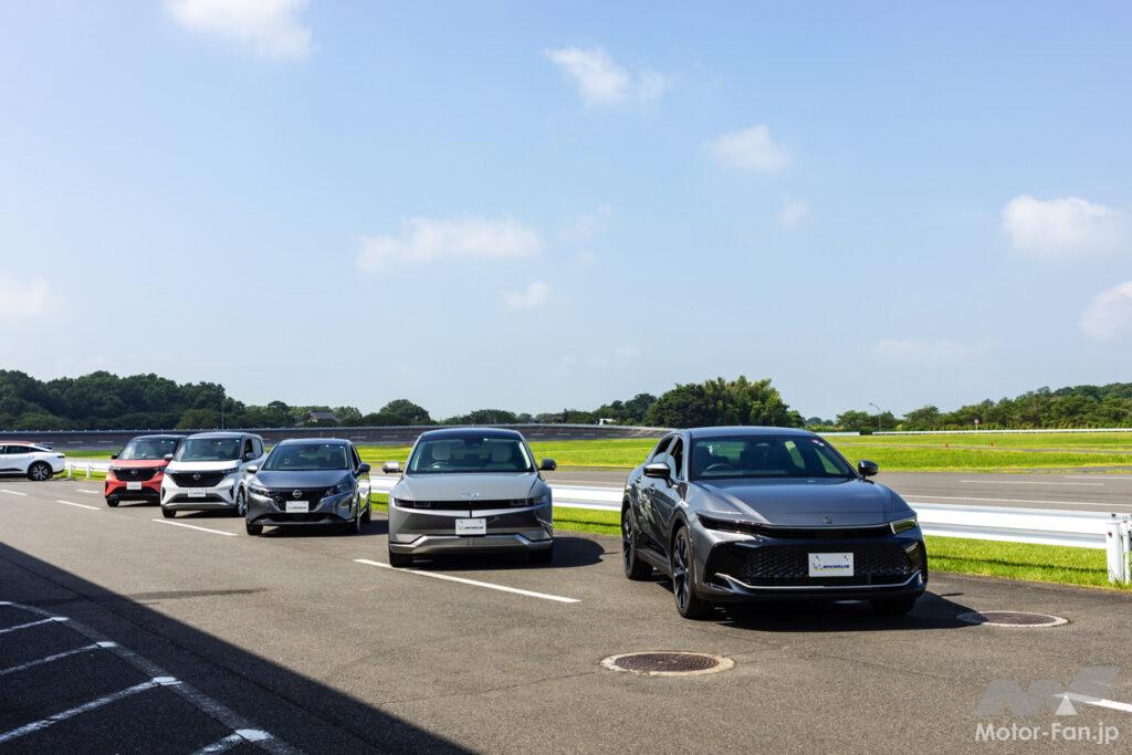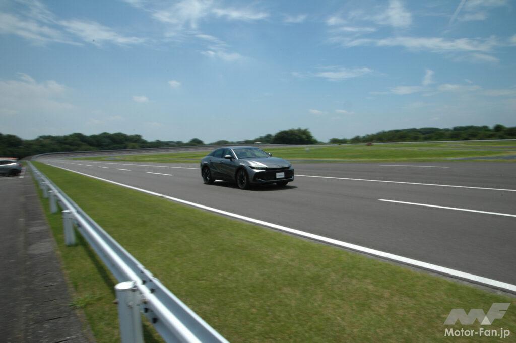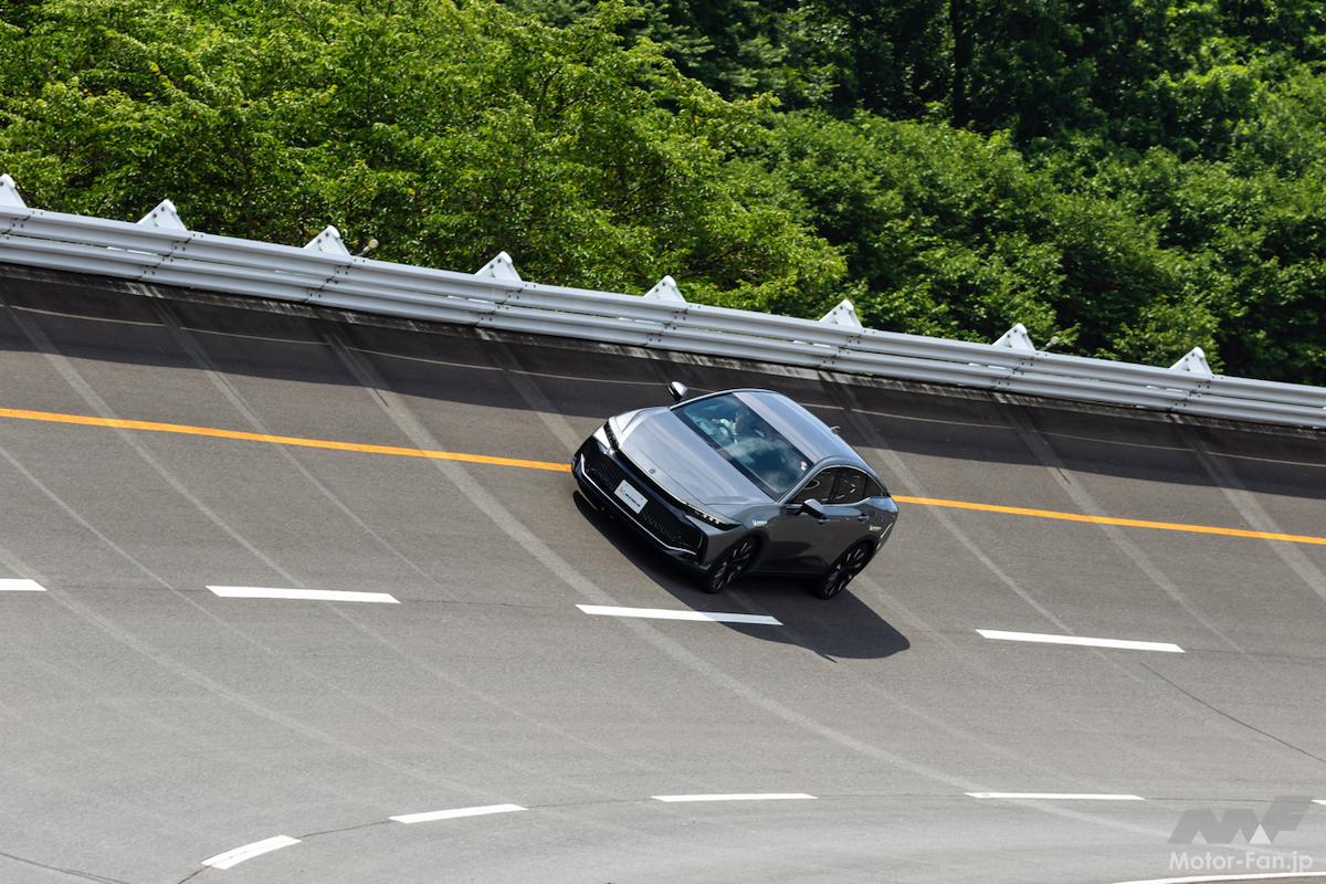 高速周回路での「快適性・ハンドリング性能」確認では、まず新型クラウンクロスオーバー(2.5ハイブリッド)とミシュラン『e・PRIMACY(イー・プライマシー)』の組み合わせを試した。ご存じ両者は、純正採用の間柄だ。
