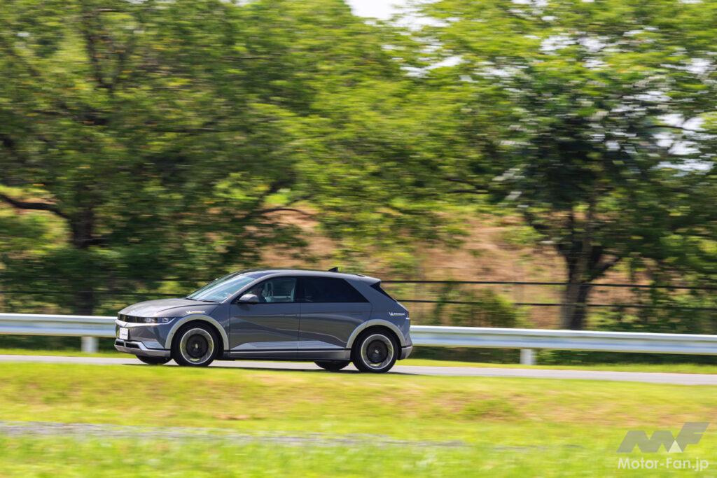 驚いたのは、ヒョンデ・IONIQ(アイオニック)5と『PILOT SPORT EV(パイロット スポーツ イーブイ)』の組み合わせだった。こちらも標準装着タイヤ(サイズは255/45ZR17)だが、その操作性が抜群だったのだ。
