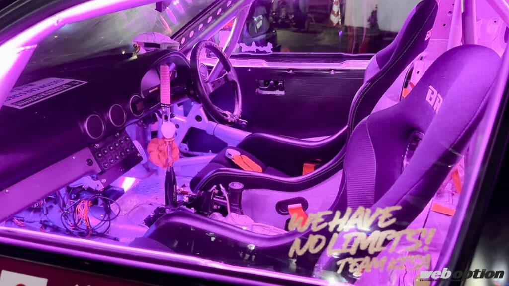 「夜のカーミートといえばやっぱりこれでしょ!」と数日かけて準備したのですが、フロア下だけではありきたりだなと思い、拘りはこの車内です! 競技車両ならではのロールケージなどの安全装備、シートやスイッチも見てもらいたかったですし、遠くても目を引くライトアップに仕上がったと思います。ボディカラーに合わせて2色のピンク.. ひとつは思ったよりも紫寄りでしたが、少し違う2色を選んだことも正解だったかな…と、我ながら大満足! ナイトバージョンのキサエイティ、いかがですか!?