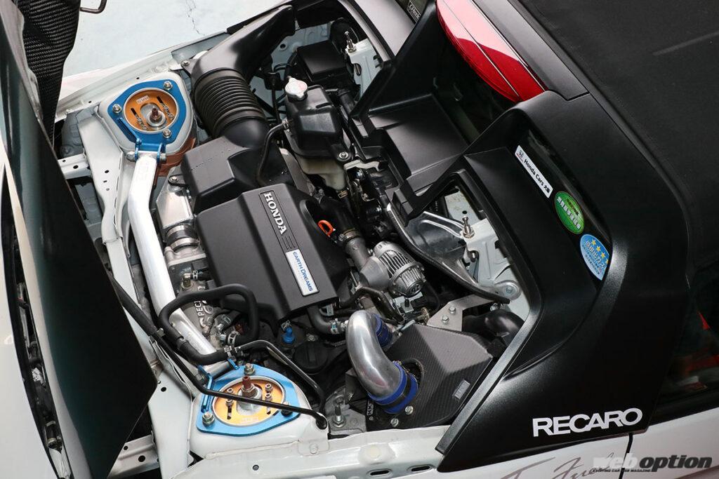 当初は長く乗るためにノーマルを貫くつもりだったが、やはり変化が欲しくなりチューニングを開始。ルックスはS660らしいスピードスタイルを表現すべく、イエローのボディに映えるレッドのアクセントラインをあしらった。注目はエンジンの放熱性にも拘ったアグレッシブなデザインのBYSリヤバンパー。シルクブレイズの大型リヤウイングと相まって、唯一無二といえる迫力を放っている。