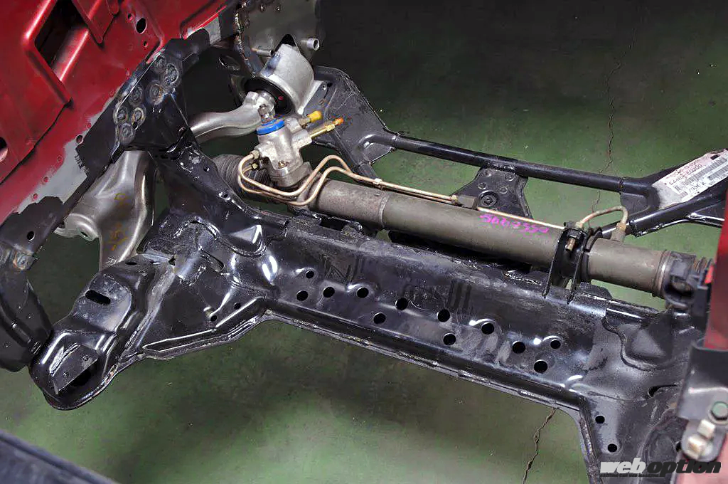 メイキング内容を簡単に説明すると、オイルパンおよびフロントデフケースはM35ステージア4WD用のVQ25を使用。それに合わせて、フロントメンバーはV35の4WD用を流用し、軸となるトランスファーにはBNR32用を組み合わせる。