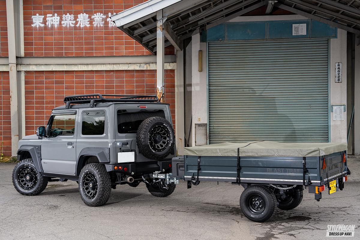 車輪は荷台の下!? スマートなトレーラーを牽引するジムニーシエラはどこか都会的