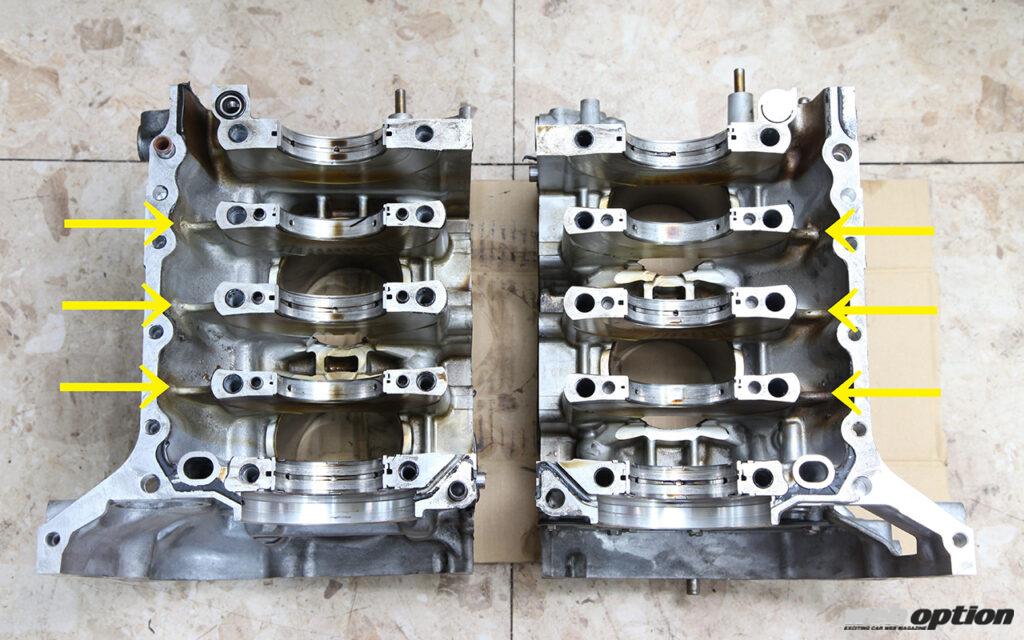 ちなみに、ターボ用シリンダーブロックはよりハイパワーに耐えられるよう設計されていて、NA用とは別物だ。