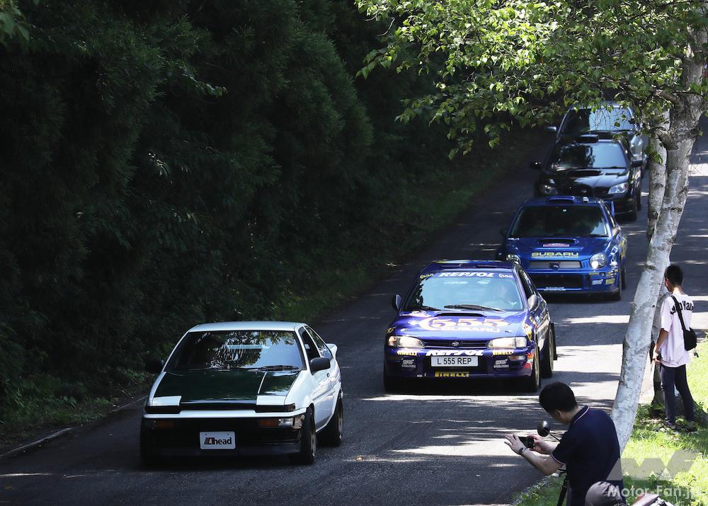 新井選手はグループAカーのGC8インプレッサWRXをドライブし、その後に200台以上の参加車両が続くと言う、豪華なパレードランになった。