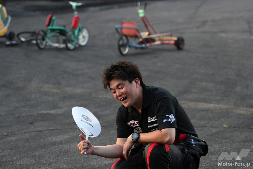 さらに新井選手はGC8インプレッサWRXに乗り換えてコースインしたもののいつまで経っても戻ってこず、会場全体が心配に包まれた頃、コース中盤でガス欠していたことがアナウンスされ、会場内が笑いに包まれた。その後、新井選手は数キロ歩いて戻ってきた。
