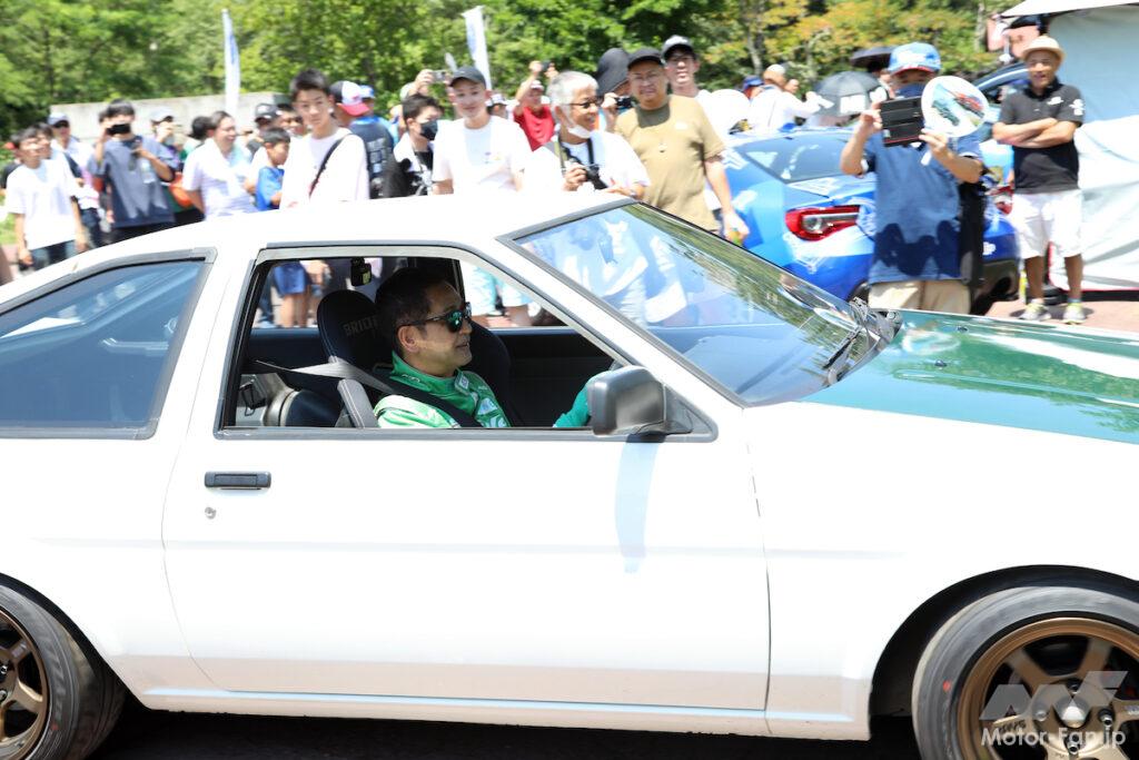 また、シークレットゲストとして、この群サイとも関わりの深い土屋圭市氏が登場。AE86スプリンタートレノでパレードランに参加した。