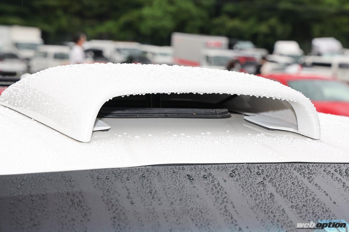 「公道最速はラリーカー」という拘りのもと、派手なスタイルで目を惹くレプリカではなく、大好きなホワイト基軸でのオリジナルアレンジを加えたのが“SCsテス”さんのBRZだ。スピード感を発揮するダクト処理や大型ウイングもポイントだが、注目すべきはラリーテイストを高めているルーフベンチレーター。なんと、ルーフにセットするだけでなくベンチレーターを備えたスバル車から開閉部を移植し、機能美パーツに昇華させているのだ。
