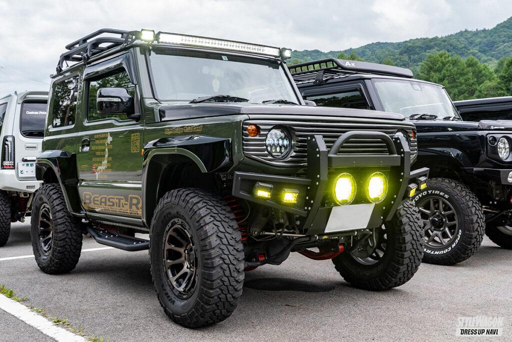 ジムニーを筆頭にエブリイやキャリー等のカスタムを得意とするビーストRのデモカー的オーラを発しているHIROSHIさんのJB64。ゴリゴリのビーストR謹製クラッシュフェンダーにモーターファームD10+グッドイヤーラングラー245/75R16を組み合せた圧巻のスタイルだが、実はシエラではなく660ccのJB64ってトコロがミソ。店舗に集う客人でジムニーを楽しむビーストR土曜の会もよろしくです。