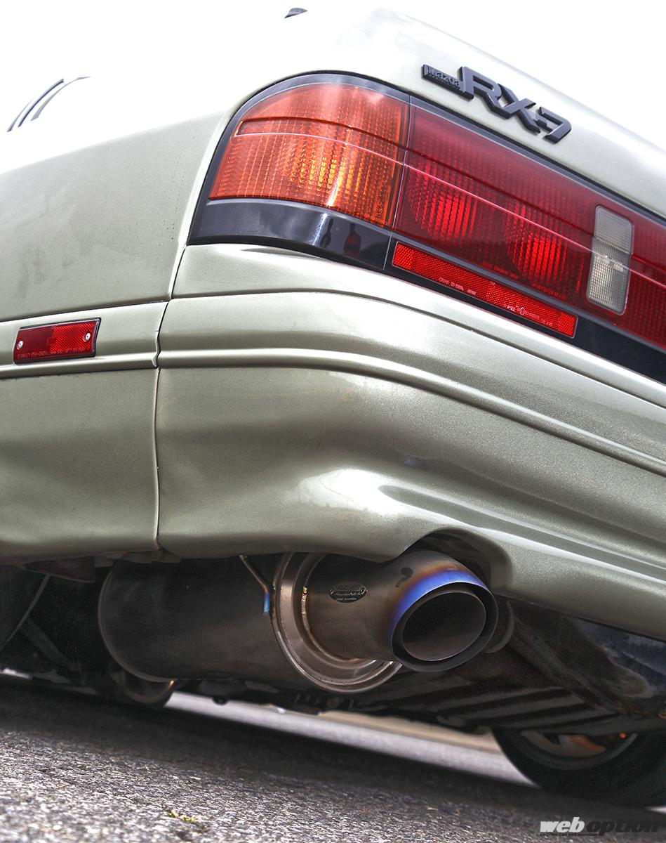 エキゾーストマフラーは、ロータリー乗りとしてのアイデンティティでもあるRE雨宮のドルフィンテールチタンをチセレクト。