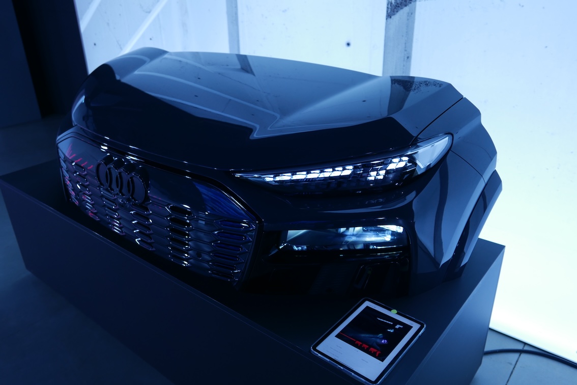 スタジオには、Q6 e-tronとSQ6 e-tron(上級スポーツバージョン)がそれぞれ1台置かれていた。それから、新しいライティング技術を詳解するためのフロント&リヤエンドのモックアップが展示されていた。