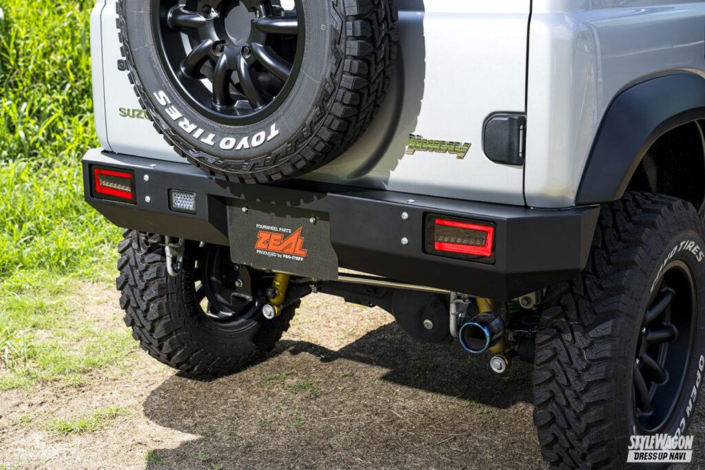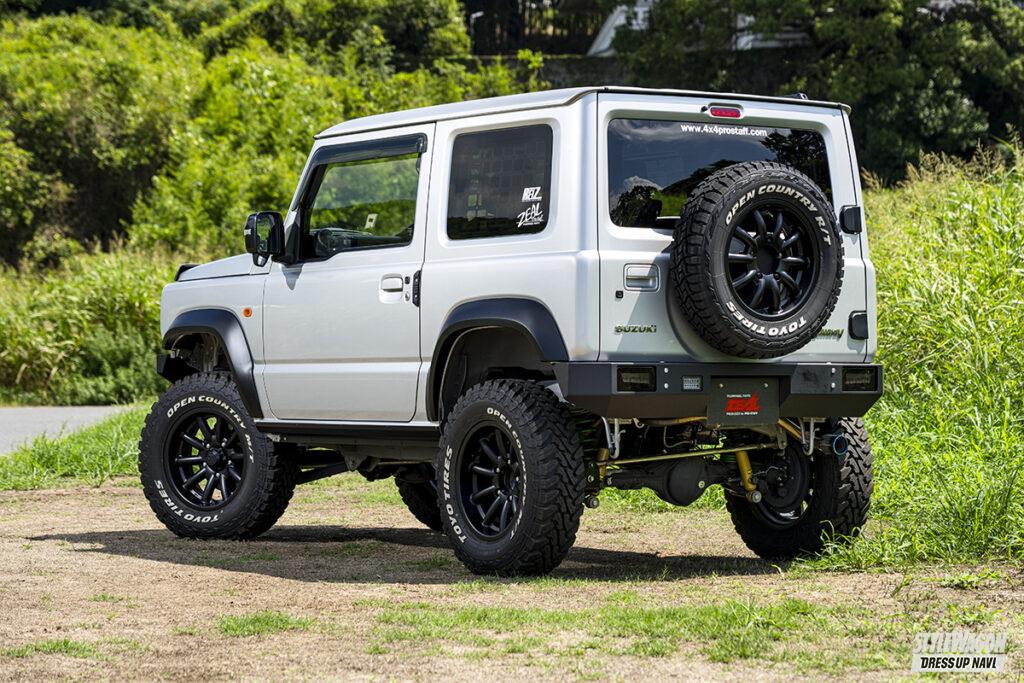 ZEALブランドでおなじみのプロスタッフが今回ピックアップしたJB64はオリジナルの3インチアップキットに、225/75R16の大径タイヤをマッチング。外装は前後ショートタイプのオフロードバンパーに、片側50㎜幅のオーバーフェンダーを装着したもので、プロスタッフのデモカーとしてはおとなしめだが、オフロード派には定番ともいえる仕様。