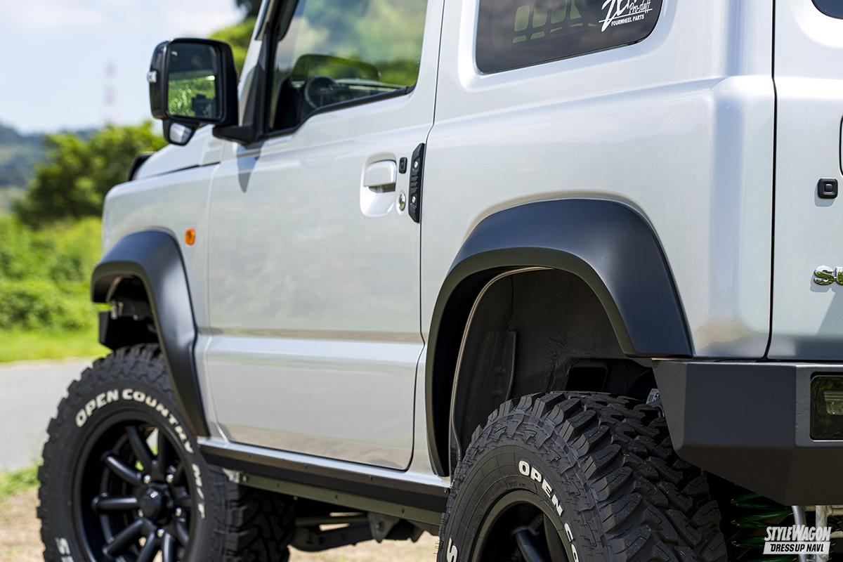 ZEALブランドでおなじみのプロスタッフが今回ピックアップしたJB64はオリジナルの3インチアップキットに、225/75R16の大径タイヤをマッチング。外装は前後ショートタイプのオフロードバンパーに、片側50㎜幅のオーバーフェンダーを装着したもので、プロスタッフのデモカーとしてはおとなしめだが、オフロード派には定番ともいえる仕様。