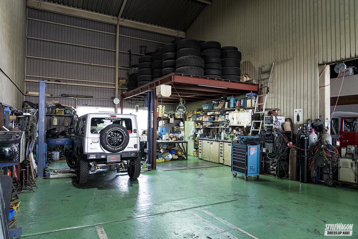 1993年設立。ジムニーの足まわり&駆動系をフル移植した軽トラや、6インチアップ&20インチホイールのジムニーなど、アッと驚くデモカーだけでなく、実用性&機能性を備えたカスタムも好評の老舗・実力派4WDショップ。