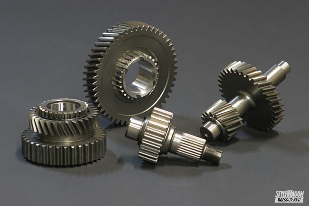 さらにタイヤの大径化でアップしたギア比と、タイヤの重量増によるトルク不足を改善するために、トランスファーのギア比を落とし、低回転でも大きなトルクを発生させることができるトランスファーダウンギアも装着。オンロードでの加速力アップ&オフロードでのクロカン性能もアップさせたジムニーに仕上がっている。