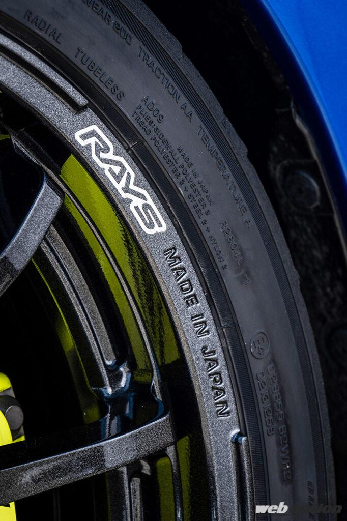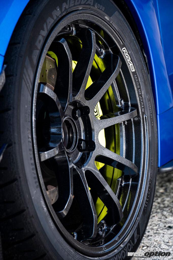 今回の装着車両、近藤エンジニアリングがチューニングを手掛けたWRX STIのように、繊細さと力強さを足元から見せ付ける洗練されたデザインも魅力。57NRを装着することでは、走りも見た目も大幅に質感を高めることができるだろう。