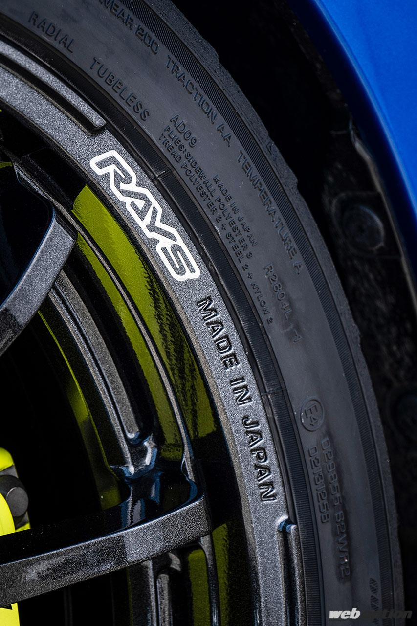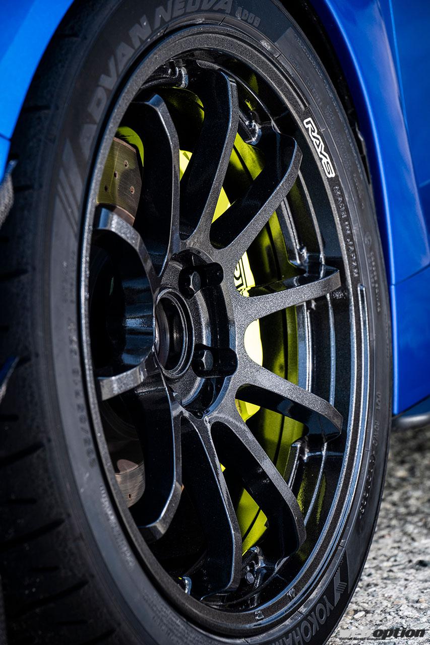 今回の装着車両、近藤エンジニアリングがチューニングを手掛けたWRX STIのように、繊細さと力強さを足元から見せ付ける洗練されたデザインも魅力。57NRを装着することでは、走りも見た目も大幅に質感を高めることができるだろう。