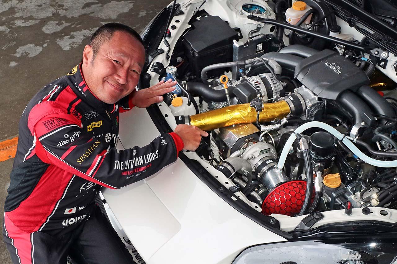 このチューンドをサーキットで試したレーシングドライバーの井入宏之選手は「テスト日があいにくの雨だったので、3速4500回転のハーフアクセルでもホイールスピンが止まらなかった。フルブースト領域じゃなくても、GR86と思えないほどのパワフルさが伝わってきたよ。感覚的にはターボチューンされたシルビア以上だね。ハイチューンの弱点となるミッションもシーケンシャルドグで強化されているし、ダウンフォースも強化されているから、ウエット路面でもそこそこ走りやすい。このクルマ、ドライコンディションだったら相当速いよ」とコメント。