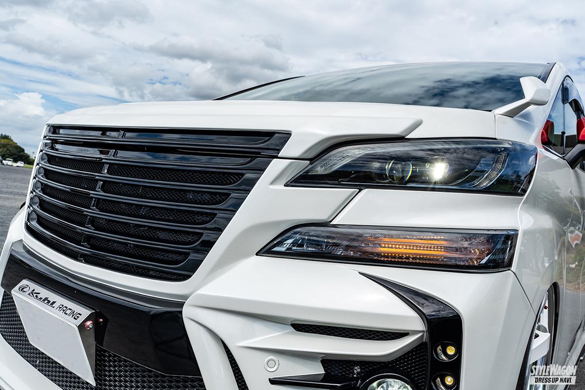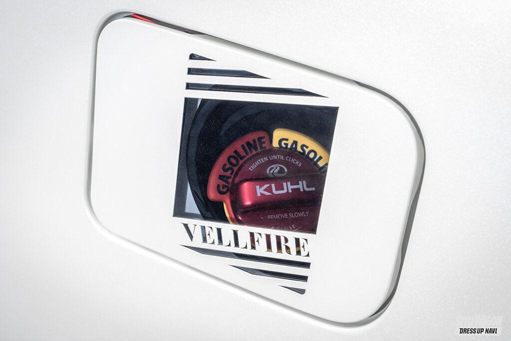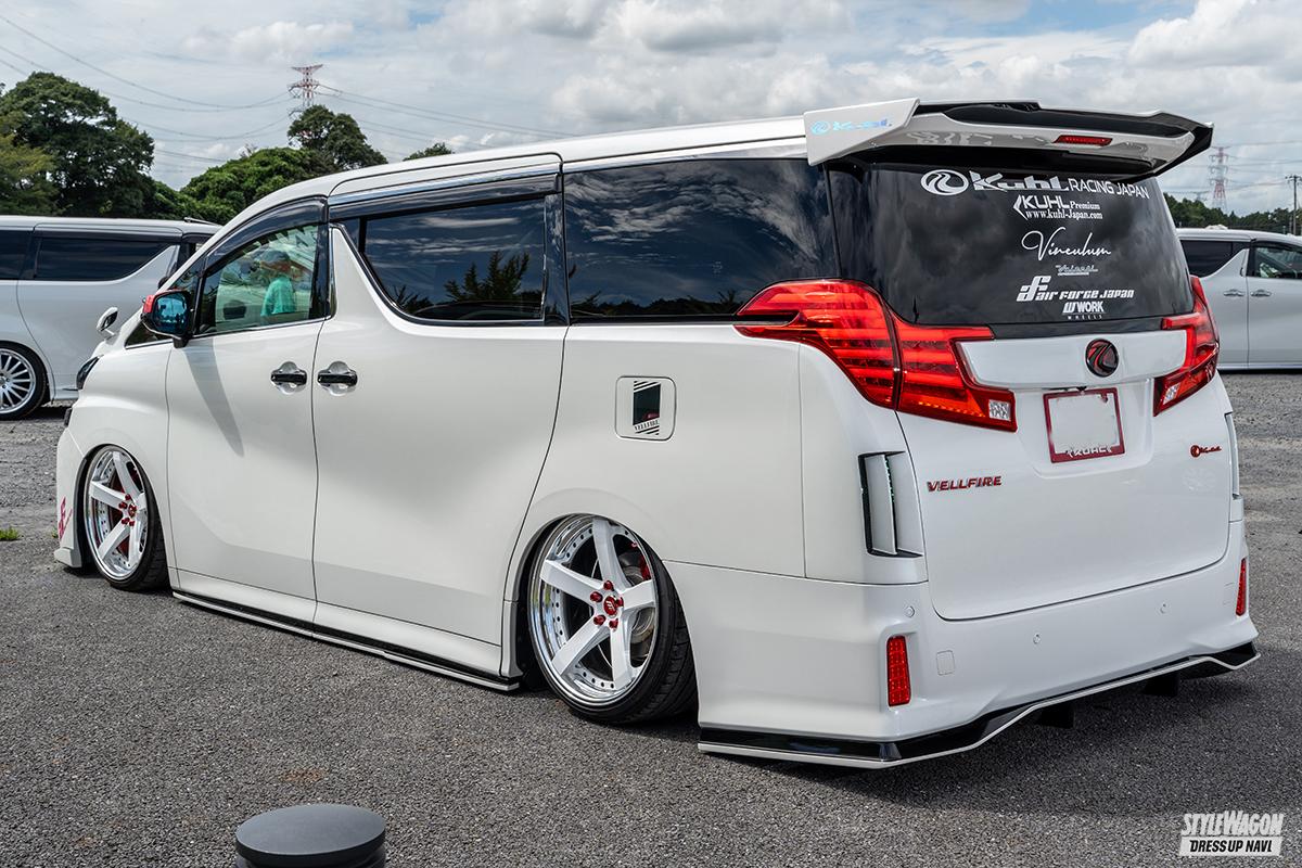 そんな高島さんのヴェルファイアはシルクブレイズのボディキットが生み出す迫力のフェイスが真骨頂。これにエアサスで実現するローフォルム、白と黒の塗り分けが生み出す存在感が加味される。ちなみに当人お気に入りはKUHLレーシングのリアウイングとのことでした。