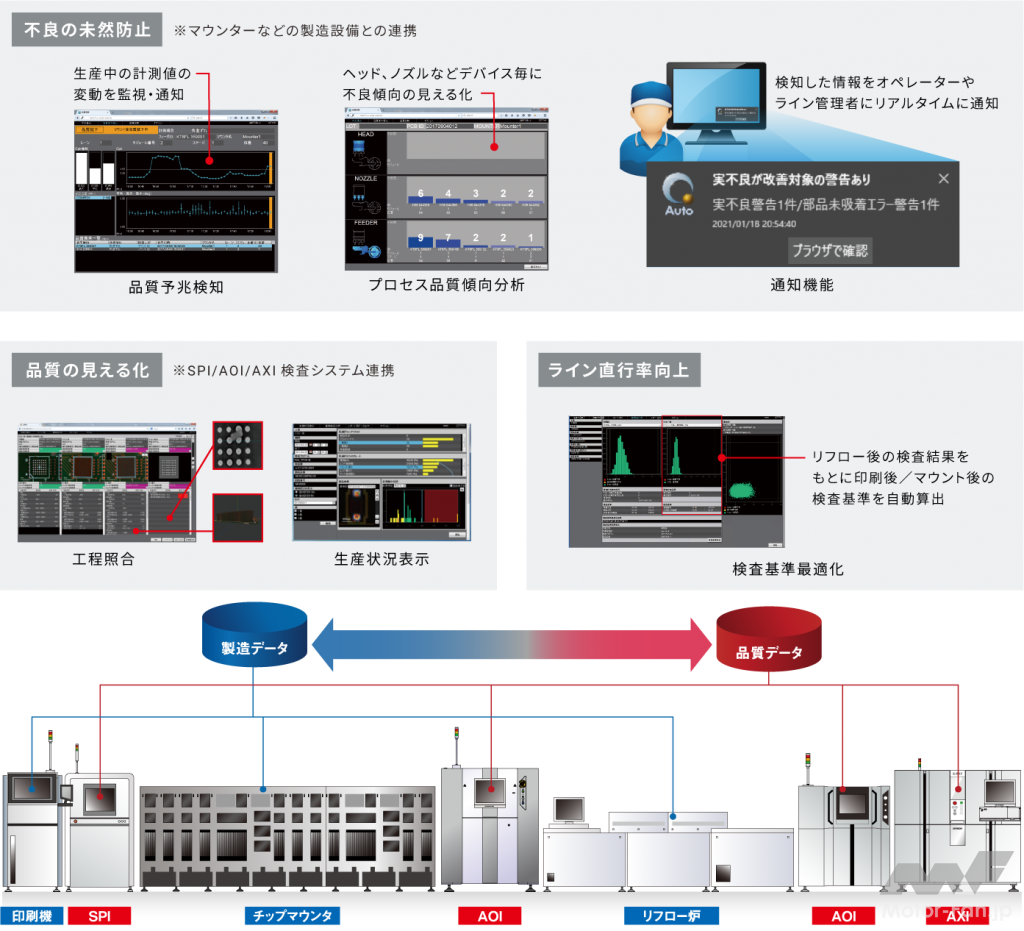 ・最終工程の検査結果から印刷後、マウンタ後工程の検査基準を自動最適化することで直行率向上