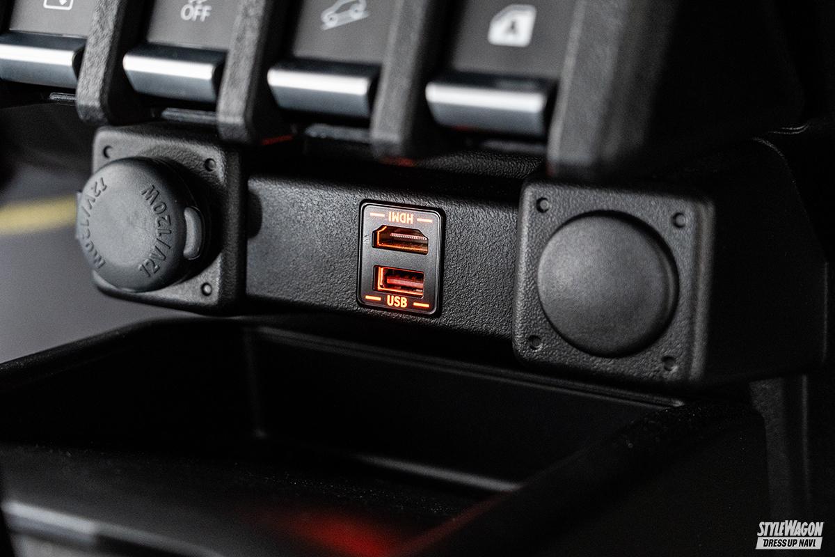 その真髄は10型の大画面モニターを採用しながらジムニーの個性を引き出すラギッドデザインをはじめ、水平基調の造形とアンバーを採用した点灯色など満載。他にも最適なルートを提示するナビゲーションシステムとしての機能も搭載されており、ジムニーの車両サイズから割り出す燃費を考慮したルートや最適な駐車場の選定など利便性も大きく向上させている。